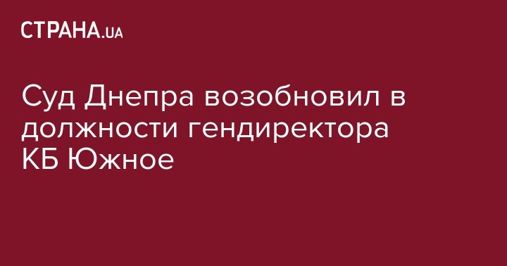 Суд Днепра возобновил в должности гендиректора КБ Южное