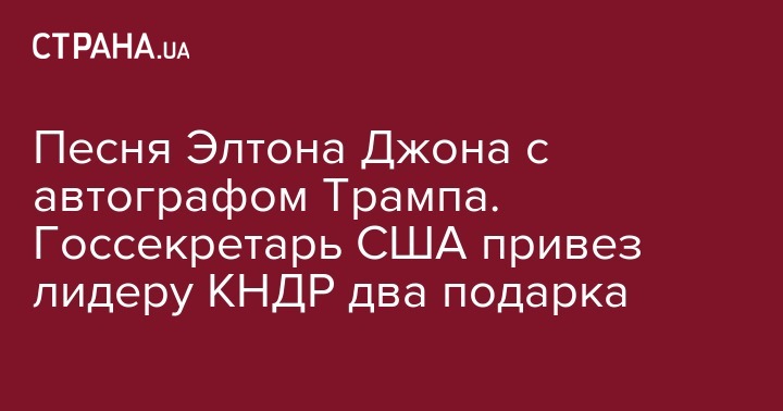 Песня Элтона Джона с автографом Трампа. Госсекретарь США привез лидеру КНДР два подарка