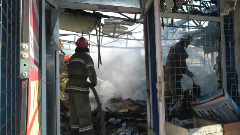 Сообщение о пожаре на рынке поступило на пульт "101" 6 июля в 6:23. По указанному адресу были направлены дежурные отделения 6-го Государственного пожарно-спасательного отряда.