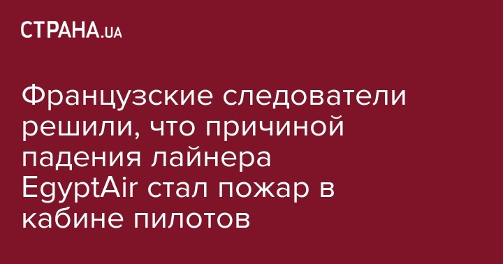 Крушение самолета EgyptAir весной 2016 года, вероятно, было вызвано пожаром в кабине экипажа.