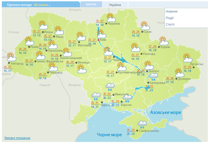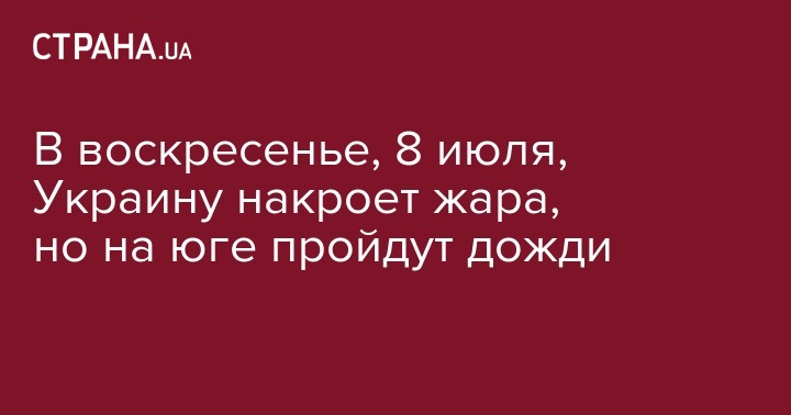 В воскресенье, 8 июля, в Украине ожидается жаркая и сухая погода. Лишь местами пройдут дожди. Об этом передает сайт Укргидрометцентра.