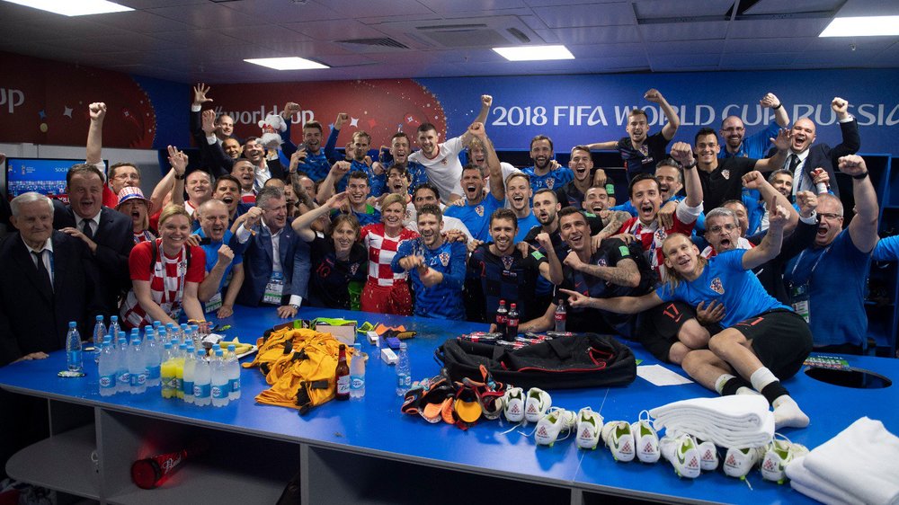 Игрок сборной Хорватии Марко Пьяца опубликовал в своем Twitter совместное фото с президентом из раздевалки сборной. Глава государства вместе с футболистами скандировала победные речевки.