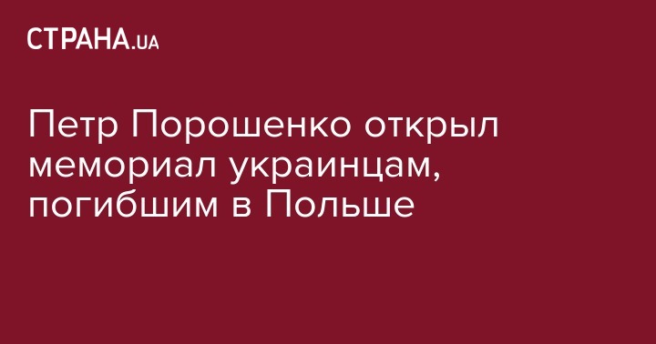 Петр Порошенко открыл мемориал украинцам, погибшим в Польше