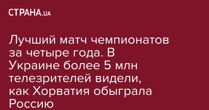 Четвертьфинальный матч Россия-Хорватия назван лучшим матчем чемпионатов 2014-2018 годов и одним из лучших спортивных событий 2018 года на украинском ТВ.