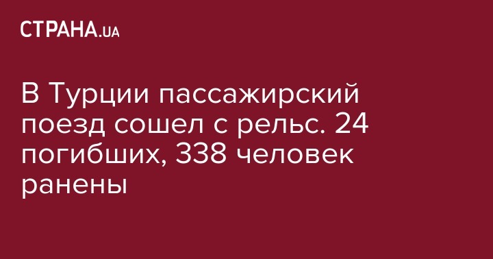 В Турции пассажирский поезд сошел с рельс. 24 погибших, 338 человек ранены
