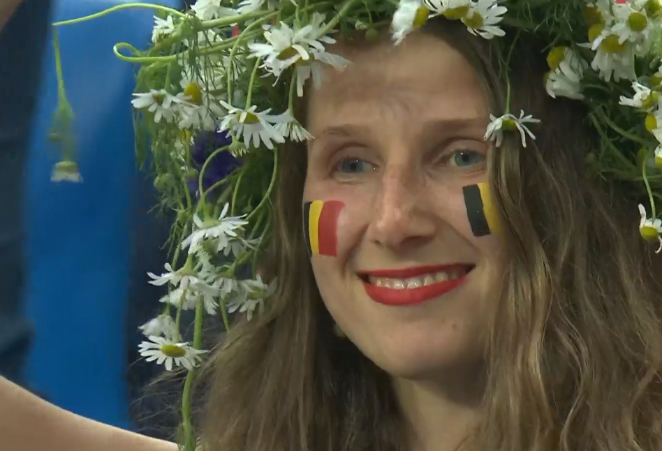 20.00 Болельщики сборной Франции в предвкушении поединка. Не отстают от них и фанаты бельгийской команды.