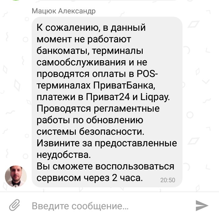 21.36 Пользователям, которым удалось связаться с банком через онлайн-сервисы там сообщили, что регламентные работы закончатся через два часа.