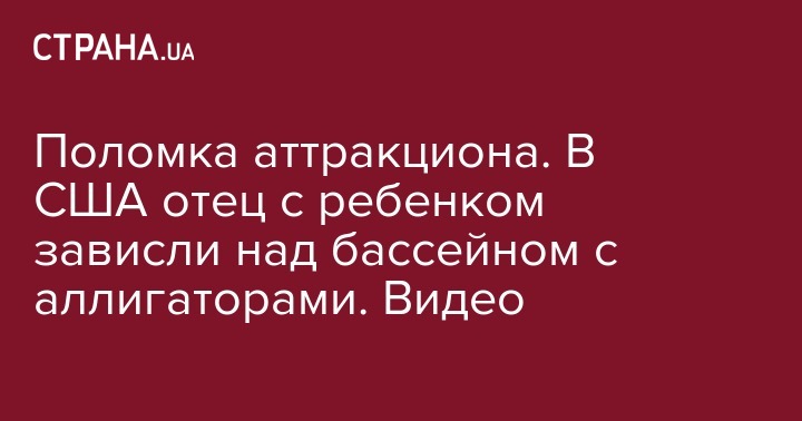 Поломка аттракциона. В США отец с ребенком зависли над бассейном с аллигаторами. Видео