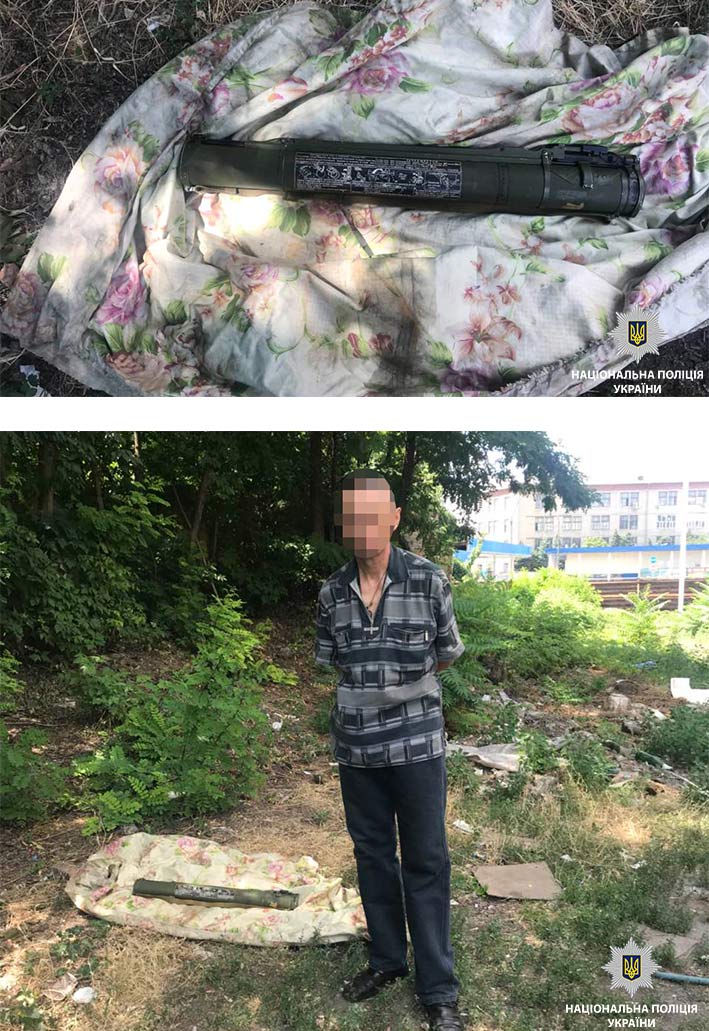 "Мужчина курил на остановке общественного транспорта, чем привлек внимание правоохранителей. При осмотре сотрудники криминальной полиции Днепровского ОП обнаружили у него РПГ-18, завернутый в простыню", - говорится в сообщении.