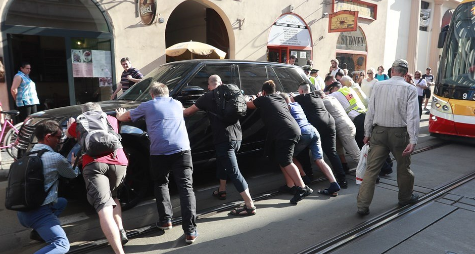 Автомобиль с украинскими номерами заблокировал трамвайное движение в центре Праги. Фото
