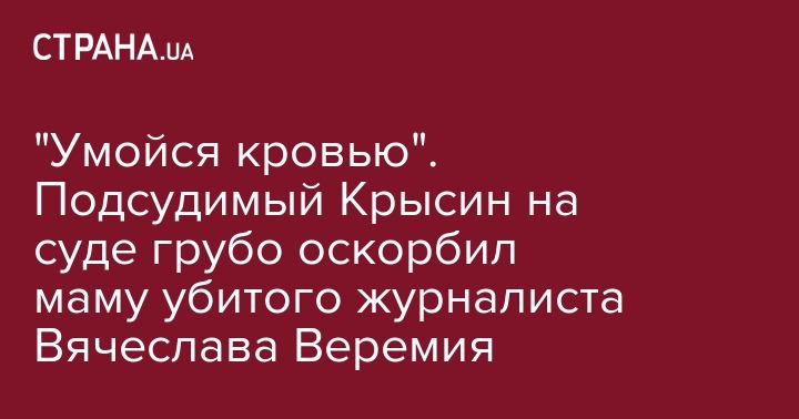"Умойся сама кровью. Надо было лучше сына своего воспитывать. Уберите эту мамашу! Веремий сначала бросал гранаты, а затем приехал снимать! Это ты хвора. Защитите меня от этого хамства, я не хочу с вами общаться. Это тебя господь накажет!", - процитировала журналистка высказывания Крысина во время заседания суда.