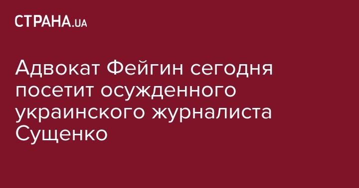 Общественный защитник осужденного в России по обвинению в шпионаже украинского журналиста Романа Сущенко Марк Фейгин сегодня. 11 июля, посетит его в тюрьме. Об этом Фейгин сообщил в Facebook.