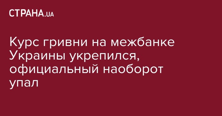 Курс гривни на межбанке Украины укрепился, официальный наоборот упал