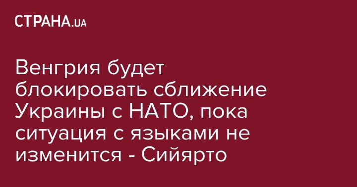 Венгрия будет блокировать сближение Украины с НАТО, пока ситуация с языками не изменится - Сийярто