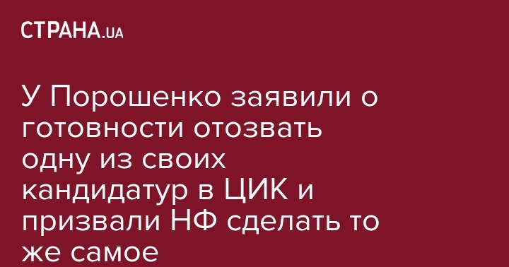 У Порошенко заявили о готовности отозвать одну из своих кандидатур в ЦИК и призвали НФ сделать то же самое