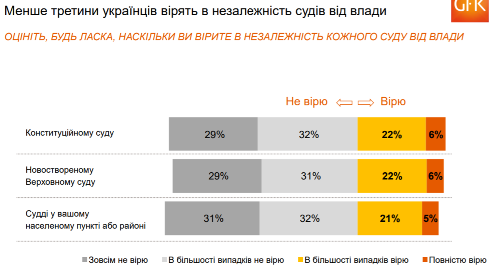 И более 60% украинцев не верят в то, что суды независимы от власти.