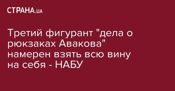 Третий фигурант "дела о рюкзаках Авакова" намерен взять всю вину на себя - НАБУ