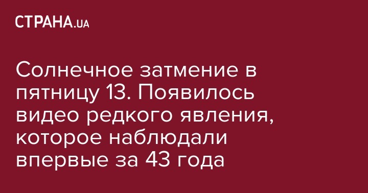 Солнечное затмение в пятницу 13. Появилось видео редкого явления, которое наблюдали впервые за 43 года