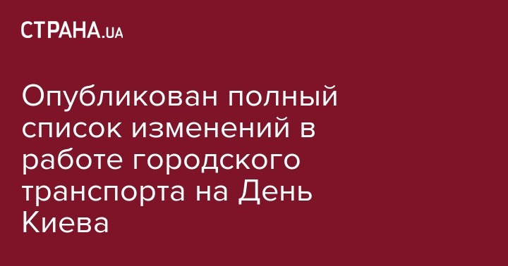 В Киеве, в связи с предстоящим празднованием Дня города, в эти выходные будут изменения в графике и схемах работы городского транспорта. Полный перечень предстоящих изменений опубликован коммунальным предприятием "Киевпастранс" на его странице в Facebook .