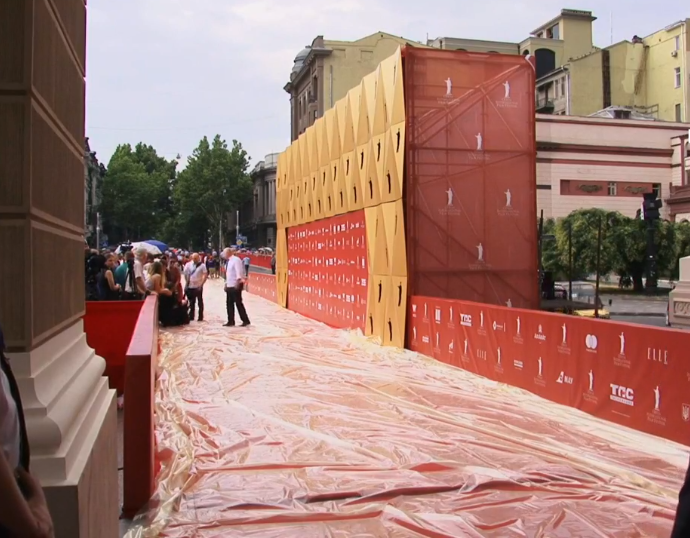 Фото: От дождя красную дорожку прикрыли полиэтиленом/facebook.com/1tv.od.ua