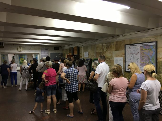 "Пользование сегодня метрополитеном чревато для здоровья: метровые очереди, автоматы выключены, одно окошко выдаёт жетоны, из которого периодически издаются крики на покупателей. Welcome to USSR!"? - написала пользовательница Инна Петрух.
