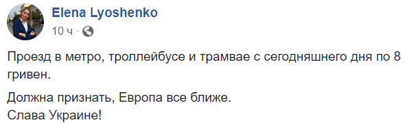 "Проезд в метро, троллейбусе и трамвае с сегодняшнего дня по 8 гривень.