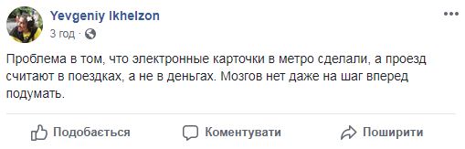 "Проблема в том, что электронные карточки в метро сделали, а проезд считают в поездках, а не в деньгах. Мозгов нет даже на шаг вперед подумать", - иронизирует над происходящим блогер Евгений Ихельзон.