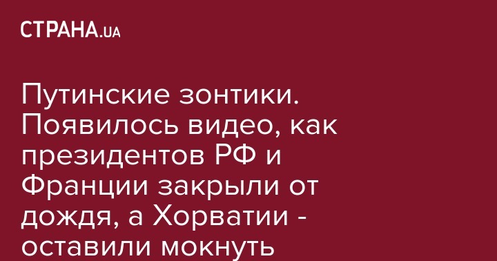 Путинские зонтики. Появилось видео, как президентов РФ и Франции закрыли от дождя, а Хорватии - оставили мокнуть