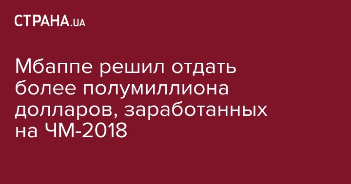 Мбаппе решил отдать более полумиллиона долларов, заработанных на ЧМ-2018