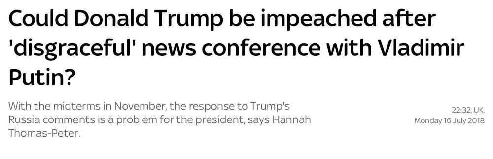 Издание Sky News обсуждает, совершил ли Трамп госизмену на пресс-конференции с Путиным и наберется ли там фактов на импичмент.