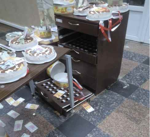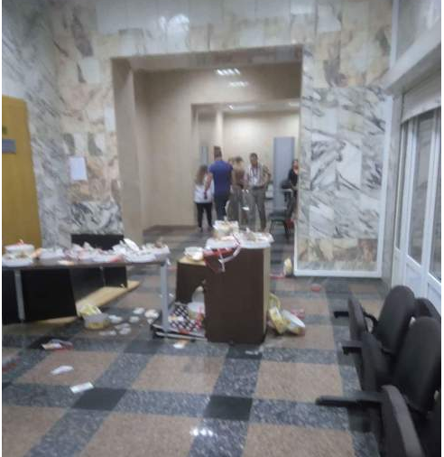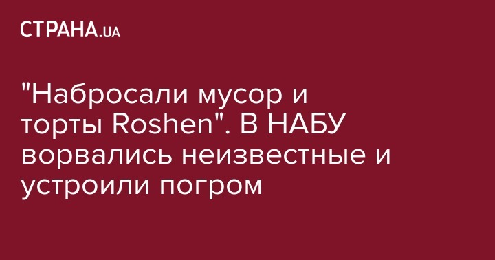 Утром 17 июля группа неизвестных проникла в холл здания НАБУ. Молодые люди разбросали торты Roshen  и сломали мебель.