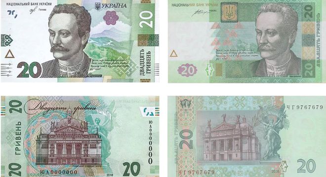 Тематика и базовые изображения на видоизмененной 20-ке меняться не буду. Как и прежде, на лицевой стороне банкноты размещен портрет писателя и ученого Ивана Франко - он практически не отличается по дизайну от 20 гривен образца 2003 года.