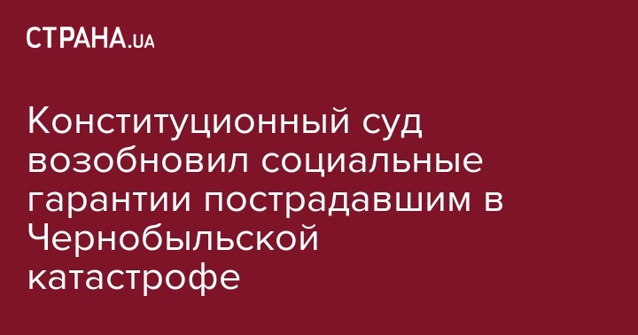 Конституционный суд (КС) Украины принял решение в деле по конституционному представлению 50 народных депутатов и возобновил социальные гарантии пострадавшим в результате Чернобыльской катастрофы, отмененные законом №76–III, принятым в конце 2014 года, сообщает "Интерфакс".