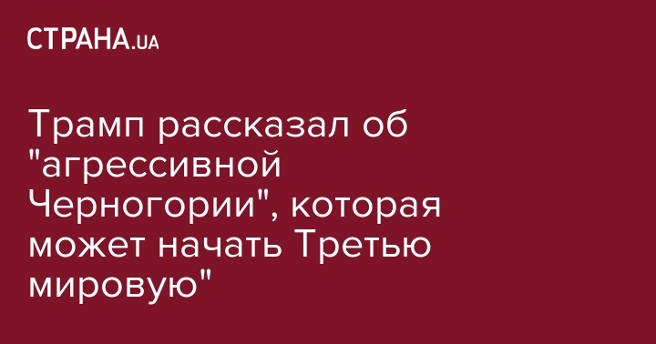 "Черногория – это крошечная страна, где очень сильный народ. Там очень сильный народ, очень агрессивный. Они могут стать агрессивнее – и поздравляю, вы в третьей мировой войне", – добавил Трамп.