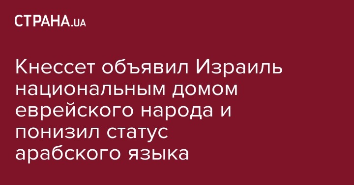 Кнессет объявил Израиль национальным домом еврейского народа и понизил статус арабского языка