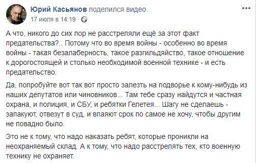 Это не к тому, что надо наказать ребят, которые проникли на неохраняемый склад. А к тому, что надо расстрелять тех, кто военную технику не охраняет".