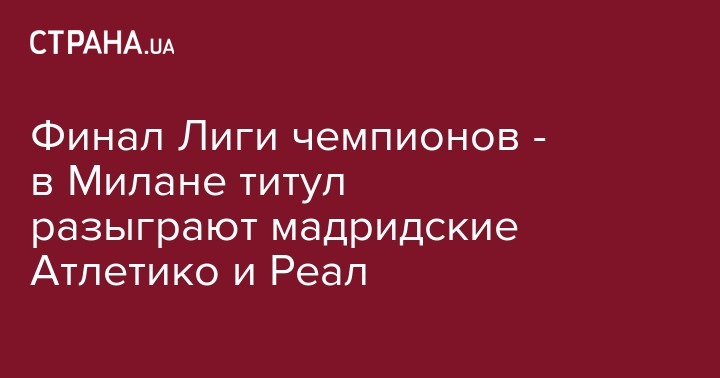 Финал Лиги чемпионов - в Милане титул разыграют мадридские Атлетико и Реал