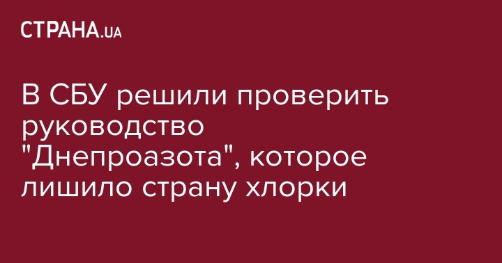 В СБУ начали проверку действий должностных лиц "Днепроазота", которые "привели к созданию дефицита жидкого хлора" в стране. Об этом сказано в сообщении пресс-центра СБУ.