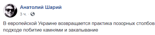 "В европейской Украине возвращается практика позорных столбов, на подходе побитие камнями и закапывание", - комментирует ситуацию журналист Анатолий Шарий.