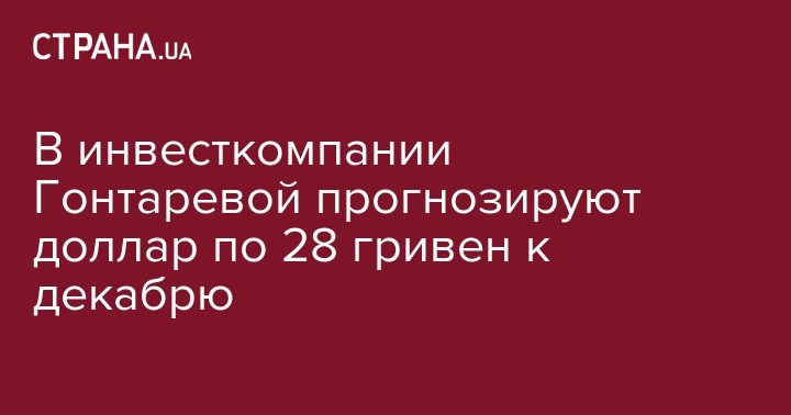 В инвесткомпании Гонтаревой прогнозируют доллар по 28 гривен к декабрю