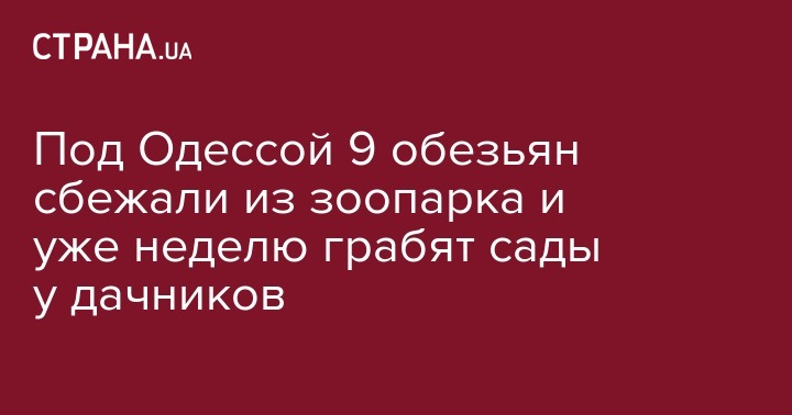 В Одесской области стая обезьян сбежали из частного зоопарка и поселились на территории дачного кооператива "Лебедь". Об этом сообщил местный житель Максим Слащев в Facebook.