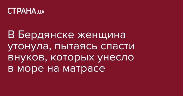 В Бердянске в районе третьей дамбы в микрорайоне АКЗ снова произошла трагедия. В море утонула женщина 1952 года рождения. Она пыталась спасти внуков, которых уносило в море на матрасе. Дети - живы.