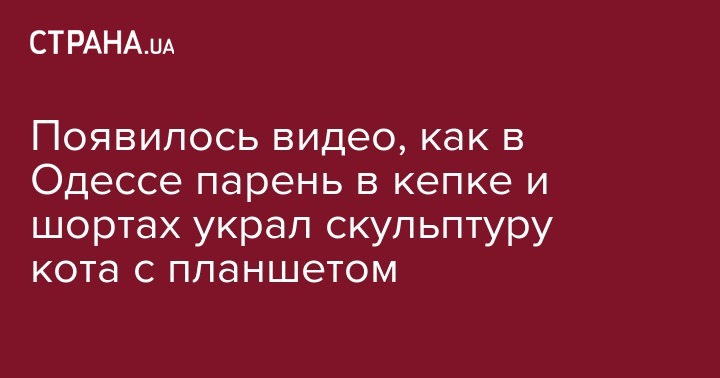 Появилось видео, как в Одессе парень в кепке и шортах украл скульптуру кота с планшетом