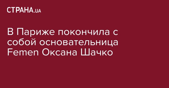 В Париже в понедельник, 23 июля, одна из основательниц международного женского движения Femen Оксана Шачко совершила самоубийство. Об этом сообщает организация ОНА со ссылкой на Telegram-канал Paris Burns, который вела знакомая Шачко.