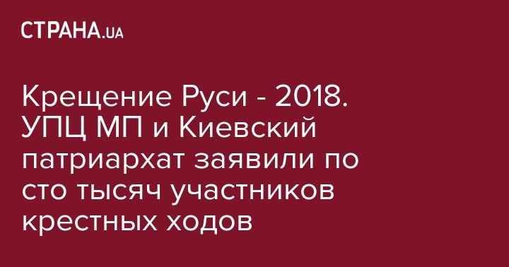 В пятницу и субботу в Крестных ходах к 1030-летию Крещения Руси примут участие по 100 тысяч мирян УПЦ Московского и Киевского патриархата.