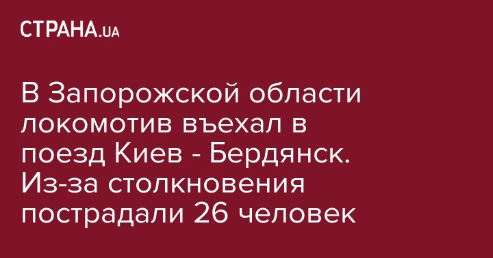 "В ходе подведения локомотива к пассажирскому поезду № 227 Киев - Бердянск было допущено превышение скорости при подключении, что привело к травмированию пассажиров (ушиб, ссадины, ожоги и т.д.). По предварительной информации, медицинская помощь оказана 26 пассажирам. Двух пассажиров - женщину с ребенком - госпитализировали в Пологовскую городскую больницу", – говорится в сообщении.