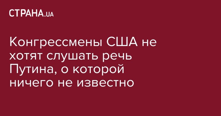 Конгрессмены США не хотят слушать речь Путина, о которой ничего не известно