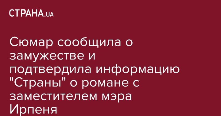 Нардеп от "Народного фронта" Виктория Сюмар подтвердила информацию "Страны" о совместном проживании с заместителем мэра Ирпеня Дмитрием Христюком. Она призналась, что недавно вышла замуж и разместила праздничные фотографии на своей странице в Facebook.