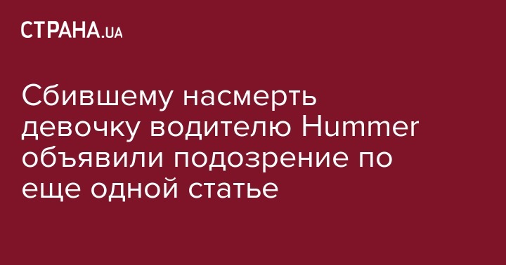 Водителю внедорожника Hummer, который вечером 24 июля насмерть сбил девочку на бульваре Леси Украинки в Киеве, объявили еще одно подозрение - "оставление в опасности". Об этом прокуратура Киева сообщила на своей странице в соцсети.