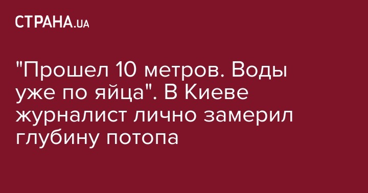 "Я не дошел еще под мост, прошел метров 10. Воды уже по яйца... Масштаб трагедии понятен вообще? Риторический вопрос: сколько реально там еще глубина, какая?.. Замерял на себе", – подчеркнул он. Сидоренко отметил, что на улице Телиги автомобилисты простояли в пробках "полтора месяца".